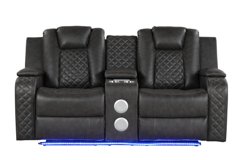 Benz LED & Power Reclining Loveseat Made With Faux Leather in Gray