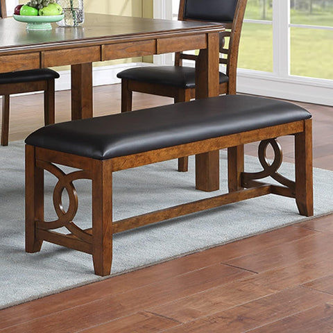 Contemporary Walnut Finish 1x Bench Dining Room Furniture Cushion Black Faux Leather Upholstered Bench Only.