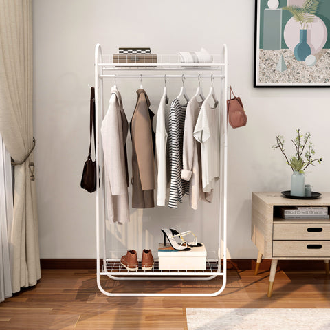Garment Rack Freestanding Hanger Double Rods Multi-functional Bedroom Clothing Rack White