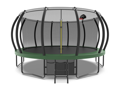 15FT Trampoline green for Kids and Adults Outdoor Trampoline with Enclosure Net, storage, Basketball Hoop