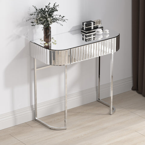 Mirrored Vanity Table, Mirrored Dressing Table, Stainless Steel Glossy Frame Desk for Bedroom Studio Office(Gray Striped Mirrored)