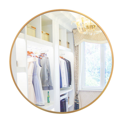 24" Wall Circle Mirror Large Round Gold Farmhouse Circular Mirror for Wall Decor Big Bathroom Make Up Vanity Mirror Entryway Mirror