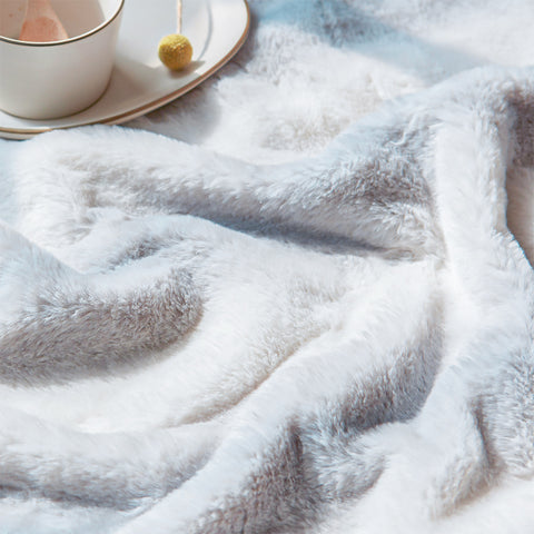 Printed Faux Rabbit Fur Throw, Lightweight Plush Cozy Soft Blanket, 50" x 60", Grey Strip