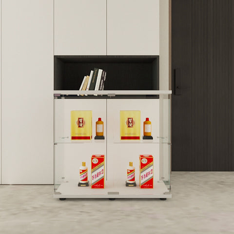 Two-door Glass Display Cabinet 2 Shelves with Door, Floor Standing Curio Bookshelf for Living Room Bedroom Office, 33.35” x 31.69”x 14.37”,White