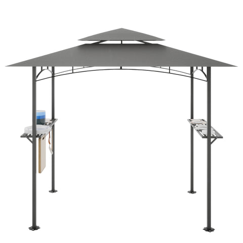 8x 5 FT Grill Gazebo Grill Canopy Double Tiered BBQ Gazebo Outdoor BBQ Canopy, Gray