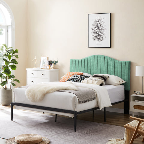 This beautiful Upholstered Platform Bed features upholstered headboard that adds a contemporary chic look to your bedroom and filled in thick foam to add extra comfort.Rugged metal frame construction for added stability and safety. Velvet Upholstered headboard, The design of the beauty is generous, Metal frame support, No Box Spring Needed, Easy Assemble, Queen Size, Blue / Teal / Brown / Dark Gray *Features: - Modern style and comfort to any bedroom. - Easy Assembly: The package includes clear instruction,all parts and tools,very easy to assemble. - Mattress frame comes in Full (Mattress No included) - No box spring needed: This bed frame no box spring needed, can be used with all mattress types including memory foam mattresses. - This bed will be matched 8 inch thickness or more mattress *Specifications: - Colour : Blue / Teal / Brown / Dark Gray - Weight Limit:550LBS - Overall Dimension: 65.55*84.84*55.12 inch (DxWxH) - Package Dimension: 68.70*32.87*3.74 inch (DxWxH) -Gross Weight: 94.80 LBS *Package Includes: -1 set of bed in 1 carton - Assembly Hardware - Assembly Tool - Assembly Manual one year warrantyVision