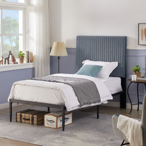 Velvet Upholstered headboard, The design of the beauty is generous, Metal frame support, No Box Spring Needed, Easy Assemble, Twin Size, Gray Blue Brown
