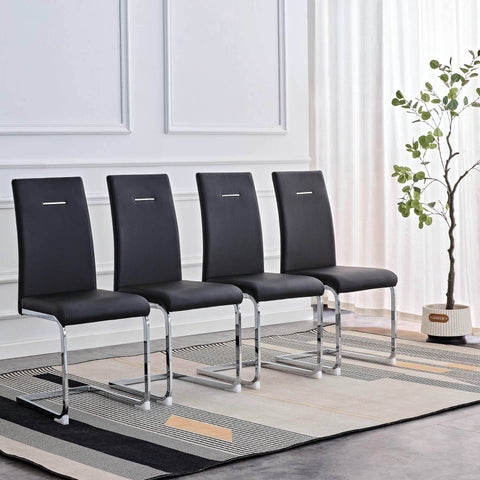 Modern Dining Chairs, PU Faux Leather High Back Upholstered Side Chair,for Dining Room Kitchen Vanity Patio Club Guest Office Chair (Set of 4) (Black+PU Leather)
