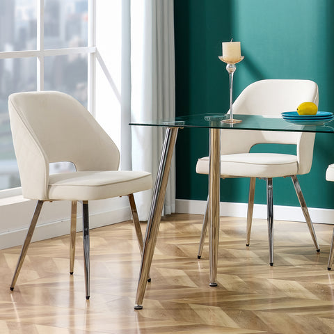 Modern Dining Chairs, Velvet Accent Chair, Living Room Leisure Chairs, Upholstered Side Chair with Metal Legs for Dining Room Kitchen Vanity Patio Club Guest (Set of 2) (Light Beige Office Chairs)