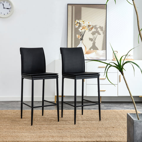 Black Leather Barstool Dining Counter Height Chair Set of 2
