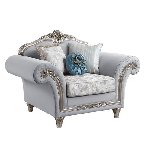 ACME Pelumi CHAIR W/3 PILLOWS Light Gray Linen & Platinum Finish LV01114