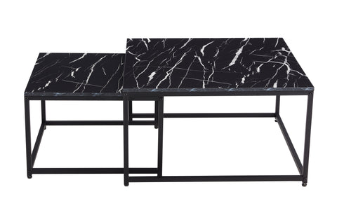 Modern Nesting Coffee Tables Set, Marble Black, 2pc, 31.5''L 31.5''W 17.72''H