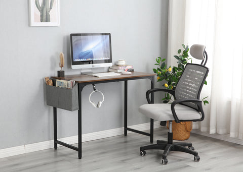 Study Computer Desk 40" Home Office Writing Small Desk, Modern Simple Style PC Table, Black Metal Frame, Rustic Brown