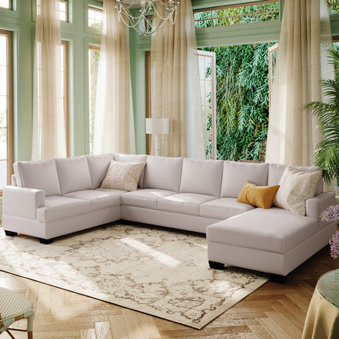 Ustyle Modern Large Upholstered U-Shape Sectional Sofa, Extra Wide Chaise Lounge Couch, Beige