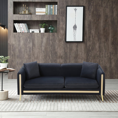 l The gold trim strip on the front arms and gold metal legs bring Luxurious feeling to your cozy home. This modern sofa will definitely add elegance and fashion to the ambience of your living space.