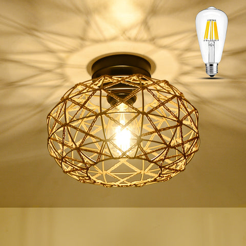 ⭐⭐【100% Natural Hand Woven Rattan】The semi flush mount ceiling light is hand woven with natural rattan fiber by superb skilled craftsmen. When the lampshade is lit, the rattan light fixture cast a beautiful star-shaped light effect, create vintage style amber warm light and artistic atmosphere for any room. This ceiling light fixture is the best choice for you to decorate your home or give it to your relatives and friends! ⭐⭐【 Included Dimmable LED Bulb 】our flush mount light fixture comes with a Dimmable LED bulb. You don't need to buy the bulb separately, saving time and money. With the wall dimmer switch in your home, you can be adjusted to brighten or dim to meet your various brightness needs! The vintage amber glow of the boho light fixture will fill any room with mystery, romance, warmth and artistic. ⭐⭐【E26 Bulb Socket & Product Size】The farmhouse ceiling light fixtures has a total height of 8.9 inches and a diameter of 11.8 inches, the diameter of the canopy is 4.7inches. ★★Kitchen light fixtures ceiling bulb requirements: E26 Medium Base ( Max 60W ). Entryway light fixture compatible bulb Type: Incandescent, halogen, Dimmable LED bulb(Included). ⭐⭐【Easy Assembly & Quality Guarantee】The boho Lamp includes all installation accessories, the woven hemp rope rattan cage lamp shade is lightweight and easy to install.Vision