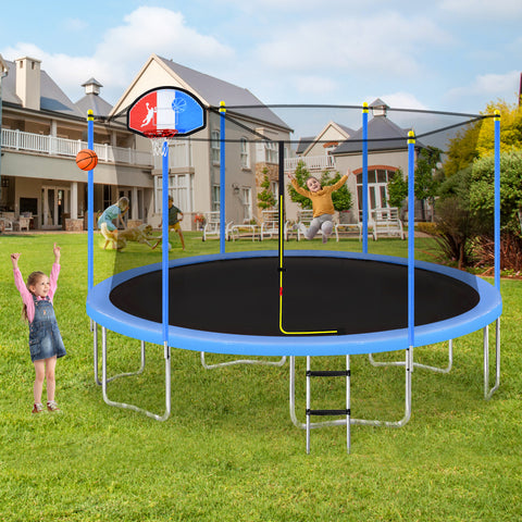 15FT Trampoline for Kids with Safety Enclosure Net, Basketball Hoop and Ladder, Easy Assembly Round Outdoor Recreational Trampoline