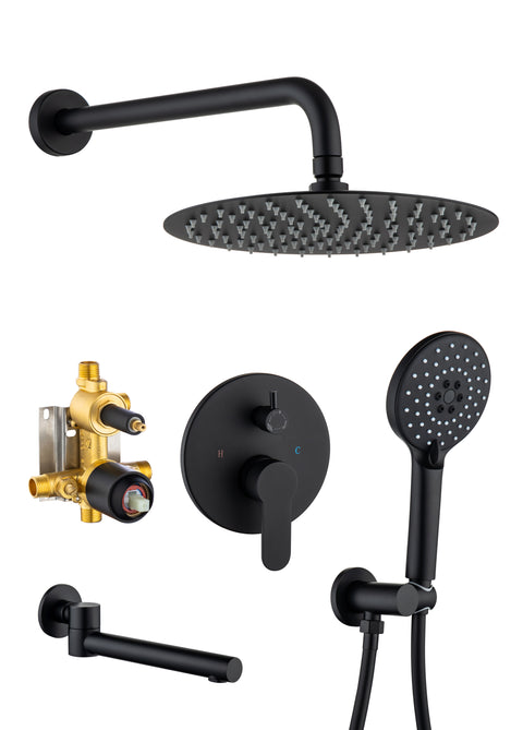 • ➤Shower Faucet with Valve: The rough-in valve body constructed of #59 solid brass is corrosion & tarnishing resistant. All the interfaces utilize US standard NPT thread and 1/2'' connection for easy installation. Ceramic Cartridge balances water pressure and protects you from any scalding or cold shock.