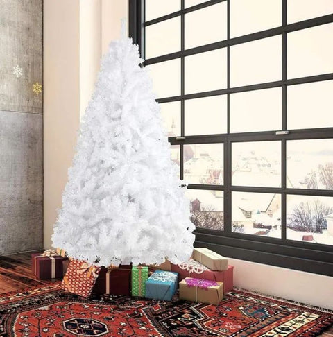 Highlights This is a Christmas tree, which is perfect for adding holiday joy to your home or office. It can create a warm and romantic atmosphere. Dense PVC needles appear fresh-cut, and environment-friendly PVC needles for safe use. The included metal base is sturdy and holds the tree up well. The 2-piece design makes it very easy to assemble. If you are looking for a Christmas tree, don't hesitate to buy it! Features: Easy Set Up: 1000 Tips; 7FT Xmas tree comes in three pieces; simply insert each piece pull down the branches that open like the tail of a peacock; a beautiful pine tree finished. Eco-friendly Material: Christmas tree are made from high quality PVC material; which makes the tree looks more real and more full. Metal Stand: 20' Solid Metal Stand with 4 feet; provide support from four directions; add stability for artificial tree. Small Footprint: 7 Feet Christmas Tree is particularly useful if you do not have a lot of room for a tree with a large bottom. Multipurpose: Great for indoor and outdoor; especial for Christmas decoration; which can be used to decorate offices; apartments; or any room in a house Specifications: Color: White Material: PVC leaf and metal leg Overall Dimension: 7ft x 39 inches Package Weight: 12.13lbs Number of Tip: 1000 Package Included 1 x 7ft Christmas tree(3 sections) 1 x metal stand 1 x Christmas tree decorations(17pcs) Note: Total height include top branch heightVision
