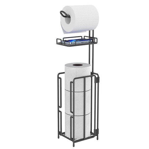 Product details Small Volume And Large Capacity: This toilet paper holder with compact vertical storage design, Holds a total of 3 extra large rolls of toilet paper. You can hang one roll on the dispenser and keep three rolls in the storage compartment below for emergencies, so your family and your guests will never be without it Stable And Durable: Free-standing toilet paper holder stand made of sturdy steel wire with a modern rust-proof treatment, have a long service life. The 4 supports and thickened frame make sure it well constructed and difficult to overturn Practical Design: The top of the toilet paper holder with storage is equipped with shelves, allows you to store small items, such as cell phones, paper towels, washing wet towels and air freshener, Hand Sanitizer, or other toiletries Space Saving: Toilet paper holder with shelf allows you to easily move to where you want, suitable for most bathrooms, even smaller apartments, RVs or campers. In addition, the height of the hygienic shelf makes it easier to reach, suitable for adults, children, disabled and left-handed Toilet Paper Holder Black, Toilet Paper Holder Stand with Reserve and Shelve, Freestanding Toilet Tissue Roll Holder with 4 Raised Feet for Bathroom Storage. Metal Bathroom Accessories ,tissue Paper Dispenser ,free Standing Toilet Paper Roll with Storage Shelf ,for Bathroom Storage Holds 4 Rolls. This toilet paper holder has a compact vertical storage design and can hold 3 additional rolls of toilet paper in total. Toilet Paper Rack with Storage Top Rack with shelf allows you to store small items like phone, tissues etc. Toilet paper holder with shelves allows you to easily move it where you want it to fit in most bathrooms Black toilet paper holder, toilet paper holder with storage and shelf, freestanding toilet paper roll holder with 4 raised feet for bathroom storage.Vision