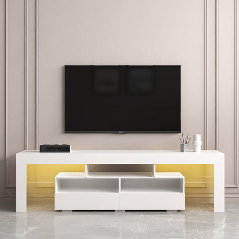 Living Room Furniture TV Stand Cabinet with 2 Drawers & 2 open shelves,20-color RGB LED lights with remote,White