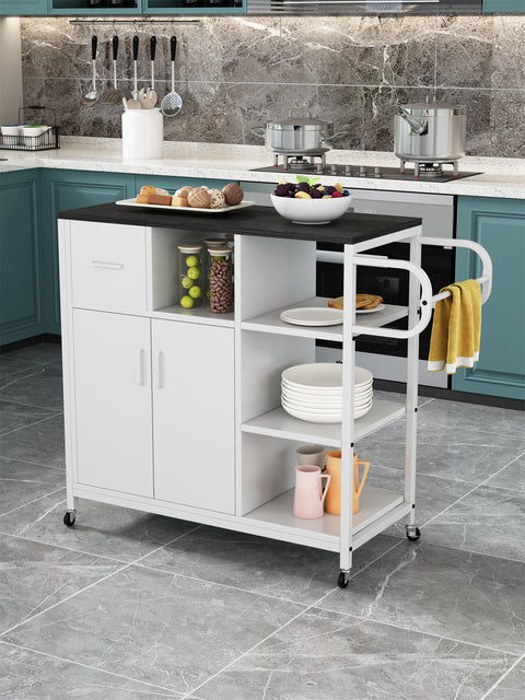 - Wheels that facilitate movement around your kitchen as well as locking casters for fixed positioning.