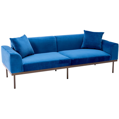 Modern Velvet Sofa with Metal Legs,Loveseat Sofa Couch with Two Pillows for Living Room and Bedroom,Blue