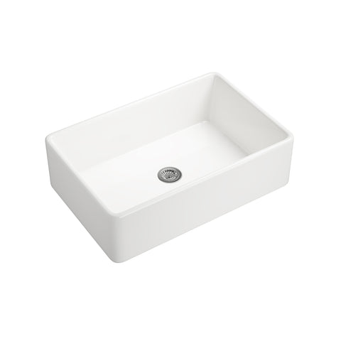 • Apron Front Kitchen Sink Single Bowl White Fireclay Porcelain Ceramic Farm Kitchen Sinks Superior Quality This white farmhouse kitchen sink constructed of true fireclay a special white clay that is fired at 2900 °F for extreme strength and durability. Durable ceramic construction with high temperature heat-treated vitreous glazed surface to resist stains and scratches. Ceramic is hardened with a lasting, high gloss glaze that prevents scratches and stains. Apron Front Kitchen Sink Unique drop-in