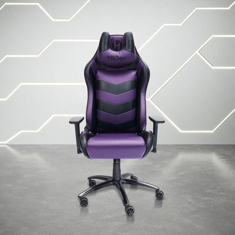 SHORT DESCRIPTION : Level up your gaming comfort with the Techni Sport TS-61. This chair was designed to meet all your around the clock needs with its full back pillow and 3D armrests that are endlessly customizable you can't find a more complete gaming chair. The Techni Sport TS-61 Ergonomic High Back Computer Racing Gaming Chair is "Where Comfort Meets Peak Performance", featuring a height adjustable memory foam seat, reclining back mechanism up to 150 degrees, tilt & tension mechanism control, ergonomic and adjustable headrest and full back support cushions, 3D armrest, and a durable 5-star nylon base with dual non-marking 2" casters. Color: Purple