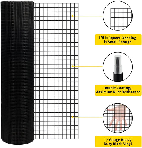 48 inch×50 ft Black Vinyl Coated Hardware Cloth, 17 Gauge 1/2 inch Black PVC Hardware Cloth, Black Welded Wire Fence Supports Poultry-Netting Cage-Home Improvement and Chicken Coop