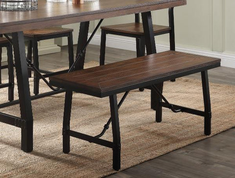 Romance : The industrial chic Mariatu wood and metal Bench has a vintage style to enhance any space. The design aesthetic of this handcrafted bench includes a metal frame in a black finish. A rectangular wood top in an oak wood finish contrasts nicely.