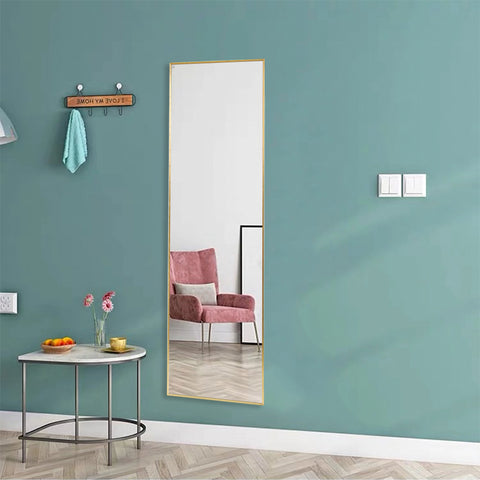 Full-Length Mirror: 50” (H) x 14”(W) with gold frame, modern and simple to fit in your home styles. TWO COLORS AVAILABLE: Black and Gold