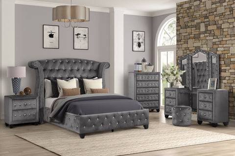 Sophia Full 5-N Vanity Upholstery Bedroom Set Made With Wood in Gray