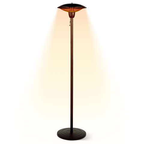 WHY SHOULD I CHOOSE AN INFRARED HEATER (ELECTRIC HEATER)?Electric heaters have several advantagesThe heat warms objects over a wide area, which means you and your guests have a larger area in which you can stay warm in.The electric heater doesn't have a flame and it doesn't burn oxygen, making it much safer and a more suitable option to use indoors than heaters with real flames.Safe - no worries about pressurized gas or storing cylinders and, unlike gas, no annual servicingSilent - it's electricClean - no smells and virtually maintenance-freeCompact - clean and easy to storeEffective - infrared rays warm instantly, giving a feeling of comfort from the moment it is switched onEfficient - unaffected by draftsEconomical and environmentally friendly - Low running costs, calculated at just 18p per hour, approximately one third the cost of gas heating.Specifications:Dimension: 16.5" in Length , 17" in Width and 77.65" in HeightWeight:25lbsVoltage: 110-120V, 60HzWatts: 1500WPower Cord Length: 70inLifespan: up to 8000 hoursMaterial: Steel, Aluminium, Plastic, GlassColor Design:BlcakSwitch: Pull StringHeat Area: 12 Sq.ft.Type of Tube :Halogen tubeWarranty: 1 Year Manufacturer's Warranty High heat output: Great quality and good heat output It makes chilly days comfortable, You can run the burner and radiates very comfortable heat. Easy to ready heater for use very efficient . it takes less then 2 seconds to light and about 10 seconds to get hot.and the area it can heat up is incredible.Let you get warm everywhere in the most convenient way. Light weight and easy to move: This Table Top Patio Heater is designed for convenience and style. Its dimension is 26 in H x 17 in dia. and only weight 25lbs.The heater is surprisingly sturdy for something so relatively lightweight - it is very easy to move around, yet moderate wind doesn't even shake it. Safety protection: : Electric Patio Heater pass ETL, CE, and IP34 certification. The Outdoor Heater covers the heating element to prevent pets or children from being burned when they accidentally touch the surface of the Infrared Heater. In addition, the Infrared Patio Heater has a stable circular base to avoid tipping over. Even if it is dumped, it will automatically cut off the power. The Patio Heater also has to overheat protection to protect your electrical safety. Easy to assemble: The Patio Heater itself is great, the instructions are easy to follow and the tools are provided .Electric Patio Heater only needs to be partially assembled and can be used. Quality Assured: ETL- Listed. Customer service office provides 100% satisfaction service.Vision