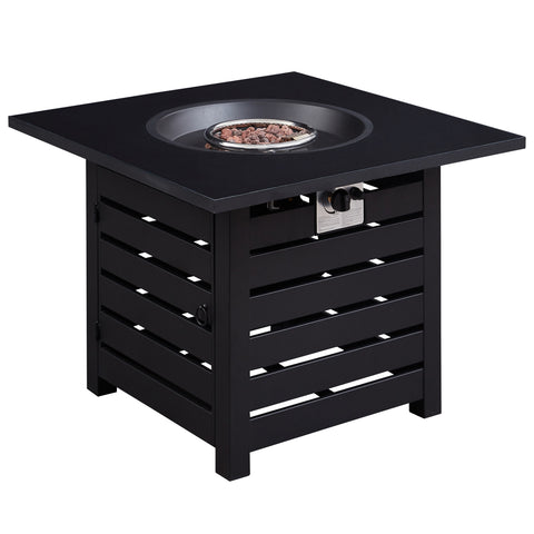 40,000 BTU Includes lava rocks This Square fire pit table with modern design will impress your guests deeply, provide a stunning modern atmosphere for your backyard space and allow your guests to fully enjoy the outdoor activities. From starry nights to evening parties with friends and family, our fire pit will warm your beautiful night, camping, courtyards. use modern, high-temperature flame-retardant Ceramic Tile Top. The combustion base of the fire pit is made of the best powder coated steel to ensure the high durability of the product. The outdoor stove provides a heat output of 40,000 BTU, which is enough to meet your baking needs and create a warm environment for you and your family. This fire pit table can use nature gas for combustion to ensure safety and environmental protection and reduce the generation of dust and smoke. The fire pit add more choice to your outdoor gathering.Vision