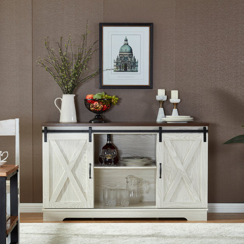Buffet Sideboard/TV Stand / Storage Cabinet with 2 Sliding Barn Doors, Walnut+White Wash