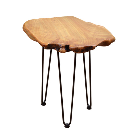 Natural Edge Side Table,Solid Wood Coffee Table Side Table Bedside Table Bedside Table Retro Square Iron Frame Support Solid Wood Cedar Coffee Table