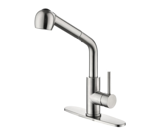 Single-Handle Pull-Out Sprayer Kitchen Faucet in Stainless is loaded with user-friendly features and has a look that matches any kitchen decor. This faucet is equipped with Seal Technology that reduces the chance of water coming in contact with potential metal contaminants once inside the faucet. This results in cleaner water.Touch-Clean soft rubber nubbins enable you to easily wipe away calcium and lime buildup with just the touch of a finger. The construction and functionality give you a faucet that's built to last up to five million uses. The included escutcheon completes the ensemble for a finished look.