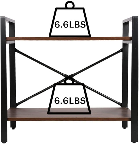 2 Tier Frame Bookshelf, Small 2 Shelf Wood and Metal Bookcase, Vintage Storage Rack with Open Shelves, 23.6”x12.6”x21.6”, Double Layer Wooden Shelf for Entryway, Hallway, Living Room,Rustic Brown