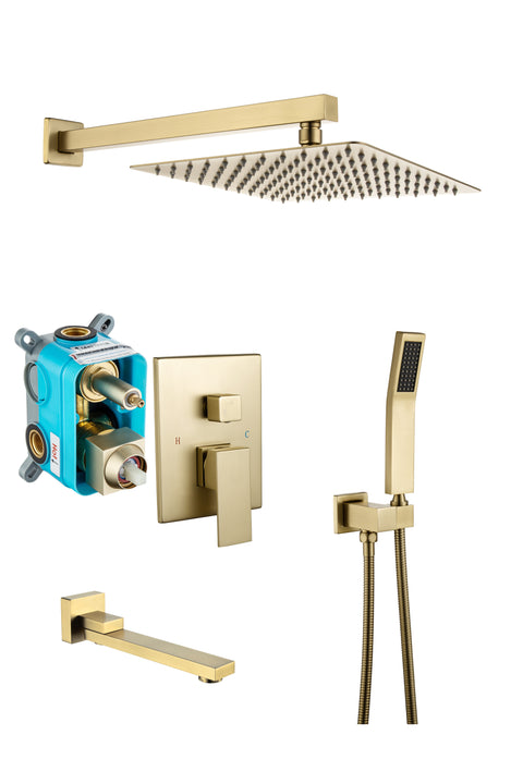 - Include:10 inch Square rain shower head, handheld shower head 1.5M shower hose,shower holder, water control valve,install hardware include.