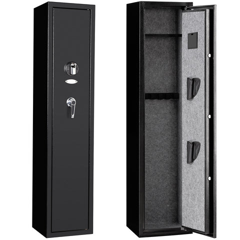 - ✅Inter Dimension: H54.33” x W11.81” x L11.02”. ✅Diversified storage: The improved rifle safely stores up to 4 rifles and some pistols. ✅Quick Access fingerprint Rifle Safe:With rapid reaction fingerprint lock system and can be easily quick setup and quick unlock.Keep your belongings safe. ✅Bigger Deadbolts: With 7/8 inches thickness of 5 bigger steel locking bolts for home defense and security, preventing the children and others from breaking in. ✅Easy Installation: With pre-drilled holes, this safe is easy to mount to the ground, in closets, garages, or any other location. ✅Anti-static velvet design:The all-round anti-static velvet carpet design can suppress static electricity generated by static electricity, prevent fire and explosion caused by static electricity, and effectively prevent malfunction and damage of electronic equipment. A soft EVA holder inside protects your gun