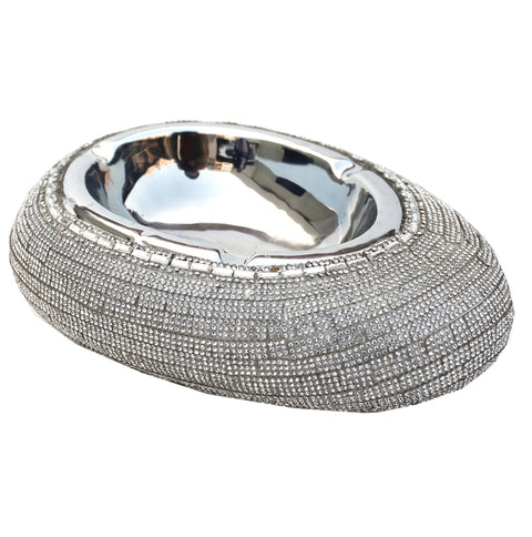 Bring an elegant touch to any tabletop with this beautiful, crystal embellished, luxury ashtray. Made of chrome-plated ceramic, this fully-functional ash tray doubles as a decorative accent suitable for applications in home and office. The ashtray features a sturdy base and and makes a perfect gift for friends and family. Wipe clean with a damp cloth. One Year Limited Manufacturer Warranty for defects.Vision