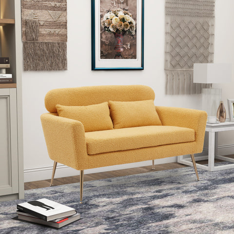 51"W Modern Boucle Loveseat Small Sofa Small Mini Room Couch Two-Seater Sofa With 2 Throw Pillows Gold Metal Legs for Small Space Office Studio Apartment Bedroom, Yellow Boucle