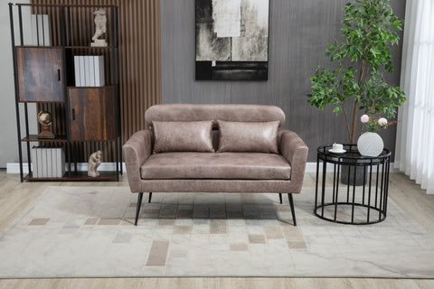 51"W Classical Loveseat Small Sofa Small Mini Room Couch Two-Seater Sofa With 2 Throw Pillows Black Metal Legs for Small Space Office Studio Apartment Bedroom, Taupe Bronzing Suede