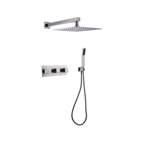 Trustmade 2 Functions Complete Shower Fixtures, 3 Knob Handles Complete Shower Systems, 10 inches Brushed Nickel - 2W03