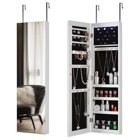 Full Mirror Fashion Simple Jewelry Storage Cabinet With Led Light Can Be Hung On The Door Or Wall