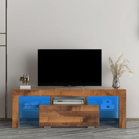 TV Stand with LED RGB Lights,Flat Screen TV Cabinet, Gaming Consoles - in Lounge Room, Living Room,FIR WOOD